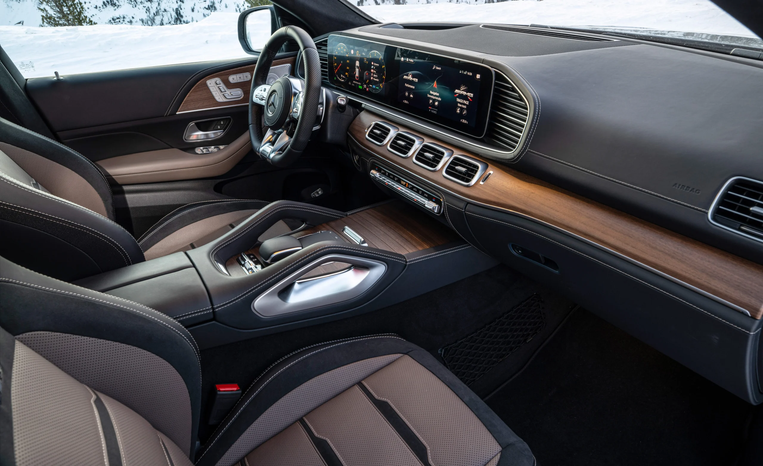 The material quality is exceptional, with a mix of premium leather, real wood or carbon fiber trims, and solid-feeling switchgear.